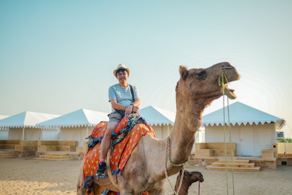 Just a short distance from Sam Sand Dunes Jaisalmer, the camp gives you front-row access to the mesmerizing sunrise and sunset over the desert.Stay in beautifully designed Luxury Swiss Tents, Deluxe Cottages, and Traditional Huts equipped with all modern amenities while keeping the rustic charm alive.Discover the vast Thar Desert with thrilling Camel Safari & Jeep Safari in Jaisalmer—an experience that adds true adventure to your journey.